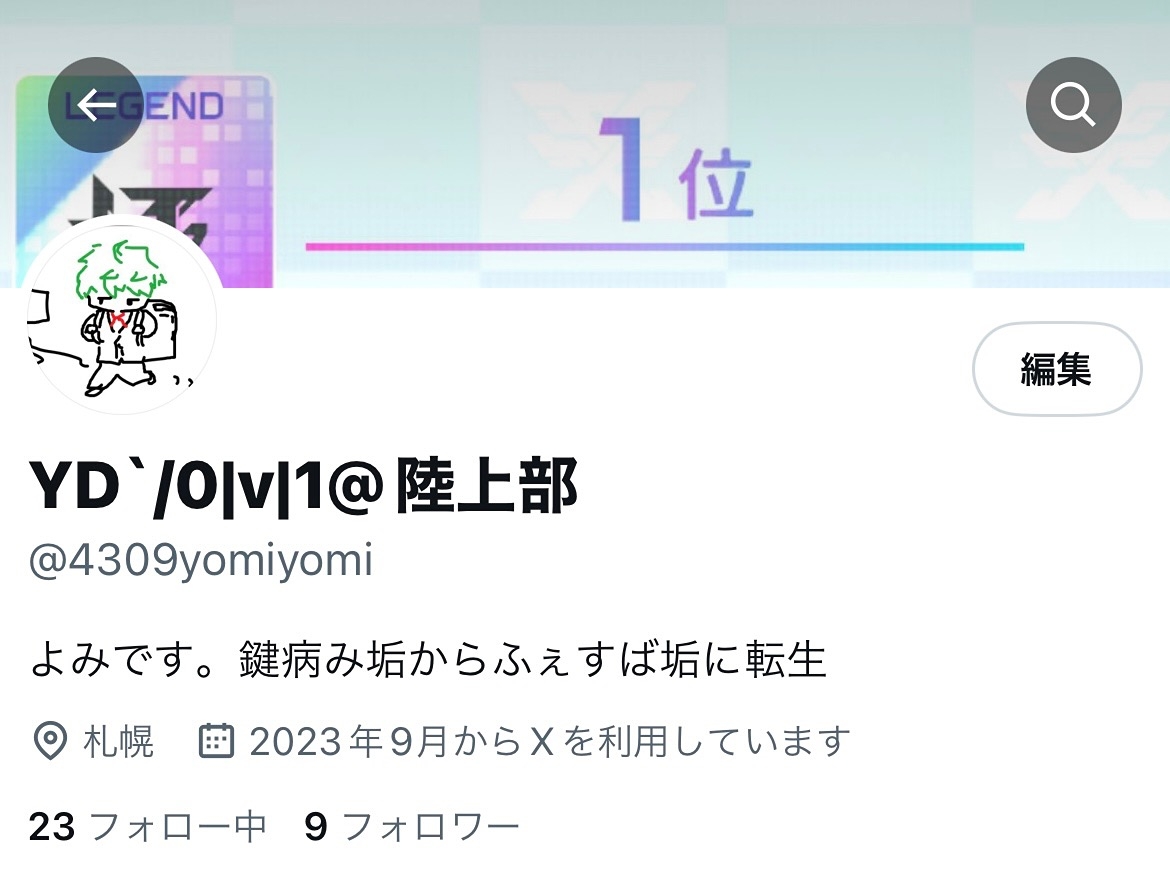 カルマ一位です。Twitter(X)始めました。 ふぇすばやってる方ならフォロバします。適当に絡んでくださいな @4309yomiyomi