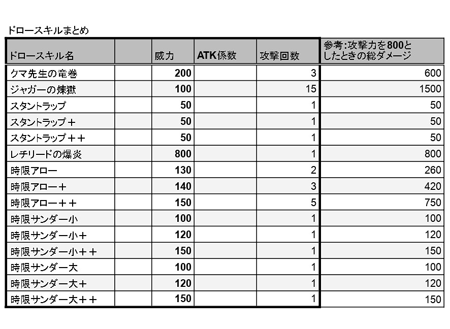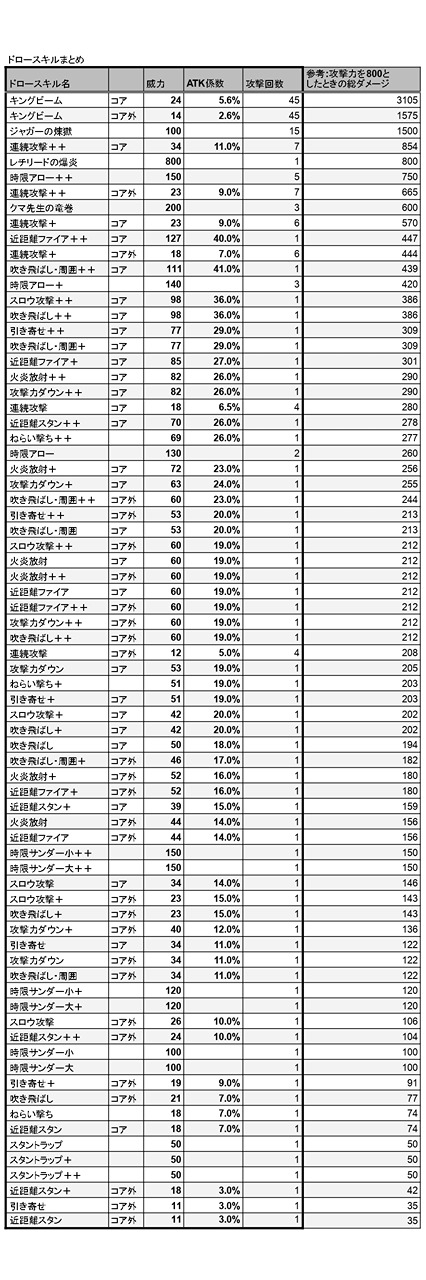 【完全版】ドロースキルの威力まとめ 1枚目から全ドロー総ダメージ順,ATK係数有のみ,ATK係数なしのみ 誤差修正しました。