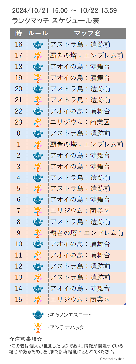 ランクマッチのスケジュール表 参考程度にお使いください