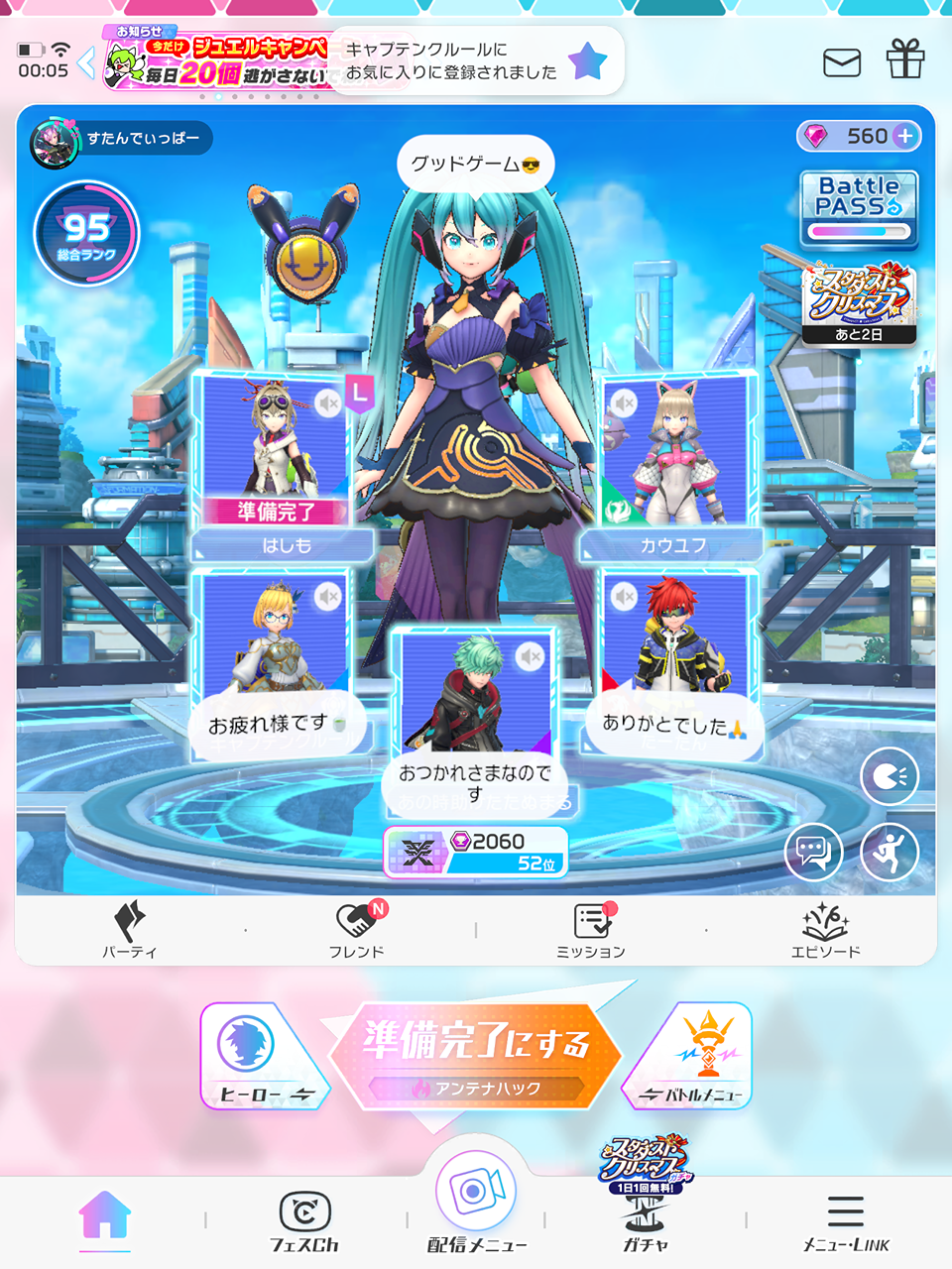 はしもさんのパーティにお邪魔させてもらいました! 上手くいった気がするけどそれよりジャックとネコヴァル相手が対処分からなすぎてつらかった() まだまだ始めて約1ヶ月半の初心者なのでしっかり勉強してきます(ง •̀_•́)ง ミクのレートもいい感じに上がれて楽しかったです!