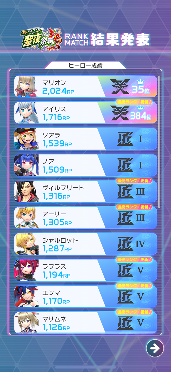 報酬目当てがメインですが。。 前シーズンはマリオン以外 パッとしてない結果でした、、 今シーズンはラプラスとエンマを レジェ目指す!
