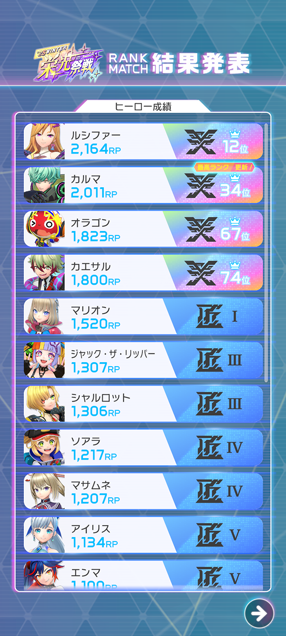 前シーズンに引き続き完ソロで2体2000RPを超えられて良かった〜 今シーズンはルシ最終1桁を目指したい