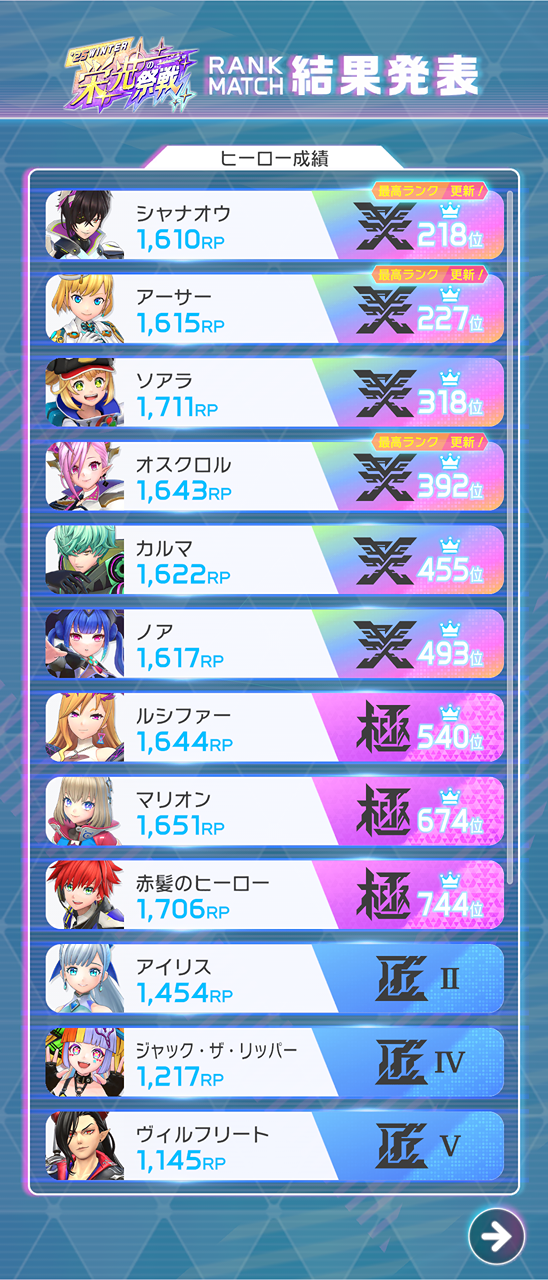 いやー2月もソコソコ頑張ったー リベリオンステージのアンテナとキャノン苦手過ぎて後半失速した😭 あと、マサムネやっかいなんよー(泣)