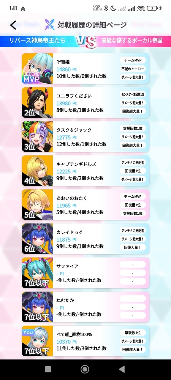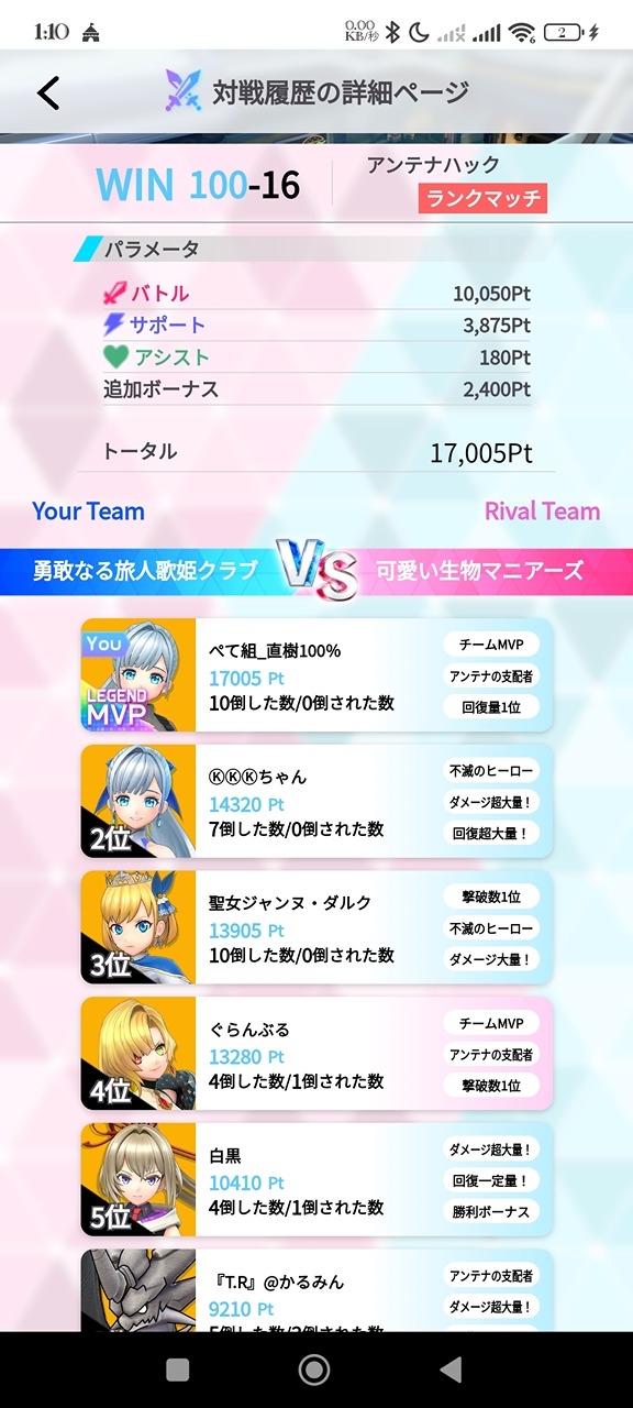 エリジウムアンテナ、味方マッチした人達あざした!6勝2敗で勝ち越せました カレイドっぐさん防衛ナイスでした!