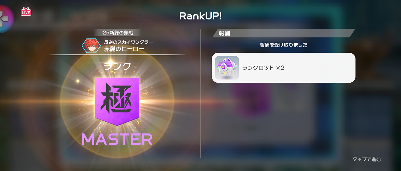 野良でしたが無事にマスターランクにアップできました。同じパーティになってくれた方に感謝感謝です。まだまだ赤髪に勝たせてもらっている状態なのでPS上げられるように頑張ります。今後も野良でご迷惑おかけしますが、よろしくお願いします!