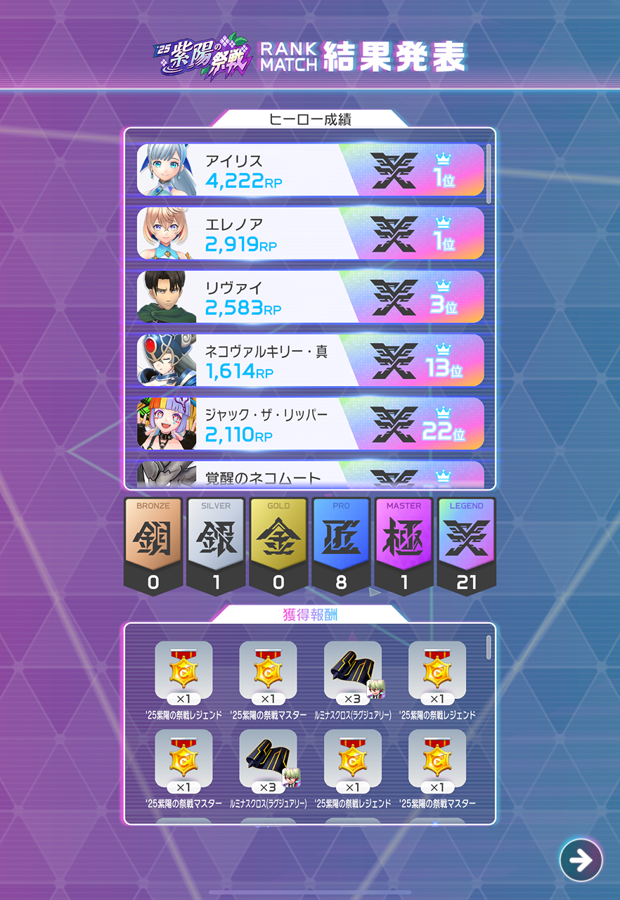 アイリスとエレノアの光の王コンビで1位取れて嬉しい