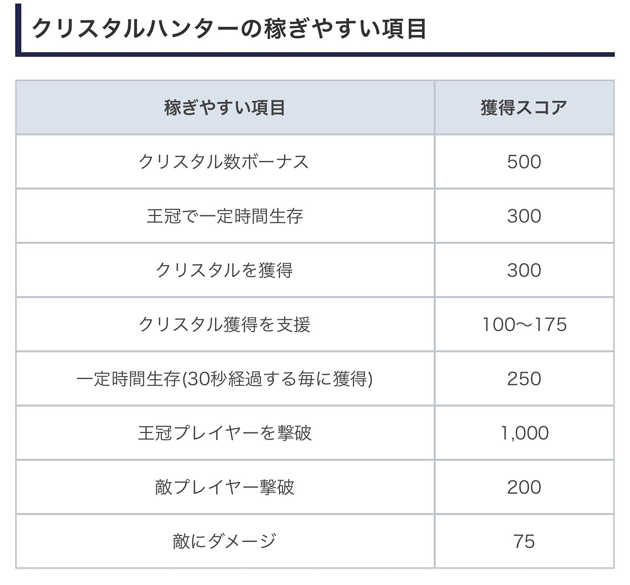 以下は各ルール毎の獲得スコア一覧です🐱