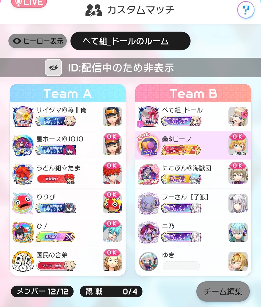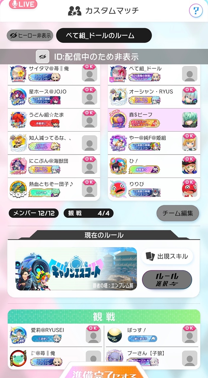 配信遊びに来てくれた方ありがとうございました🙏 写真 ペテ組のドールさんのカスマに参加させて貰いました😏 観戦機能ついたのいーね👍🏻