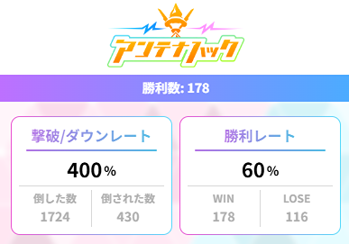 いつもYoutube配信見に来てくれてる方、ありがとうございます! マッチで同じチームの方もありがとうございます! 昨日の配信で、一つの目標、ソロアンテナ勝率60%達成しました! ソロキャノンはまだ55%なので、頑張ります! ルールに適正キャラ使ってないけど、ここまで勝率載るのは素直にうれしいですね! チャンネル登録者も777人で縁起がよさそうな数字になってます!笑 1000人目指してるので、応援してくださる方、チャンネル登録していただけたら嬉しいです!