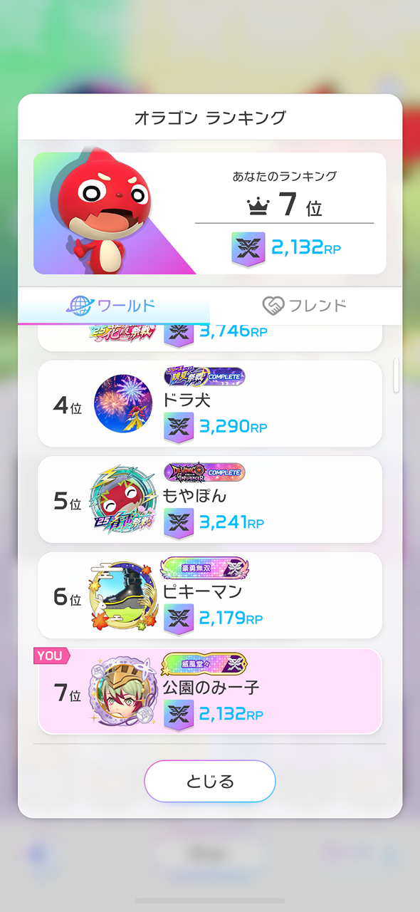 オラゴンランキング…5位の壁から急に高すぎます🥹