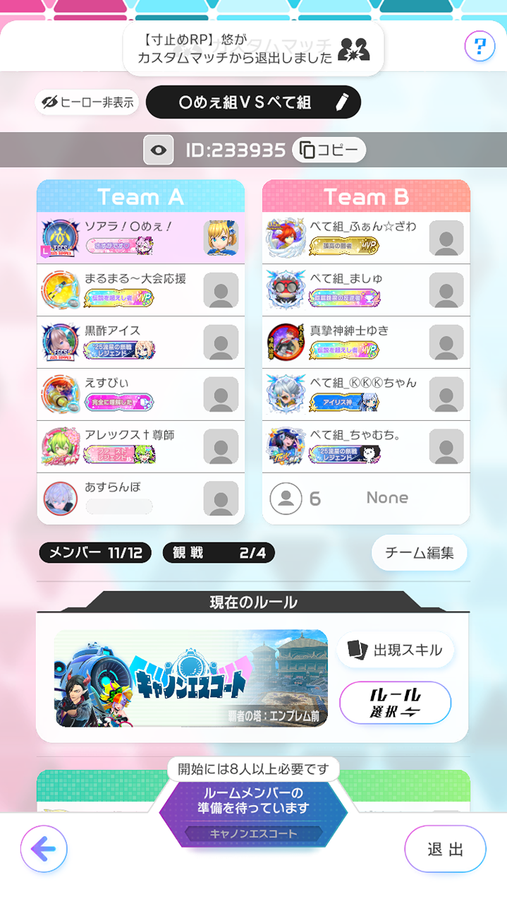 ぺて組の皆さんありがとうございました!ラスト接戦で悔しい〜!!また今度お願いします!!あとこちらのトラブルごめんなさい💦