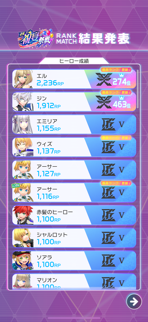 昨シーズンはエル、ジンの2キャラがレジェ達成でした!! シーズン始まる時からわかってたことですが、改めて2キャラでファーストレジェ達成はけっこう大変でした(^^;) 特にエルはRP1930から1620まで落ち込んだ時が絶望で、その日は何を食べても美味しく感じませんでした( ; ; ) 自分はリヴァイのシーズンからガチめにフェスバをやっているのですが、今シーズンが1番厳しい戦いでした!! とりあえず目標としていた2キャラがレジェ達成できたので良かったです☆ シーズン終盤はウィズで遊んでいたこともあり、今シーズンはリムルが落ち着いたらまたウィズを練習しようと思ってるので、同じチームになったらよろしくお願いします!! 皆さん今シーズンもフェスバ楽しんでいきましょー(^^)v