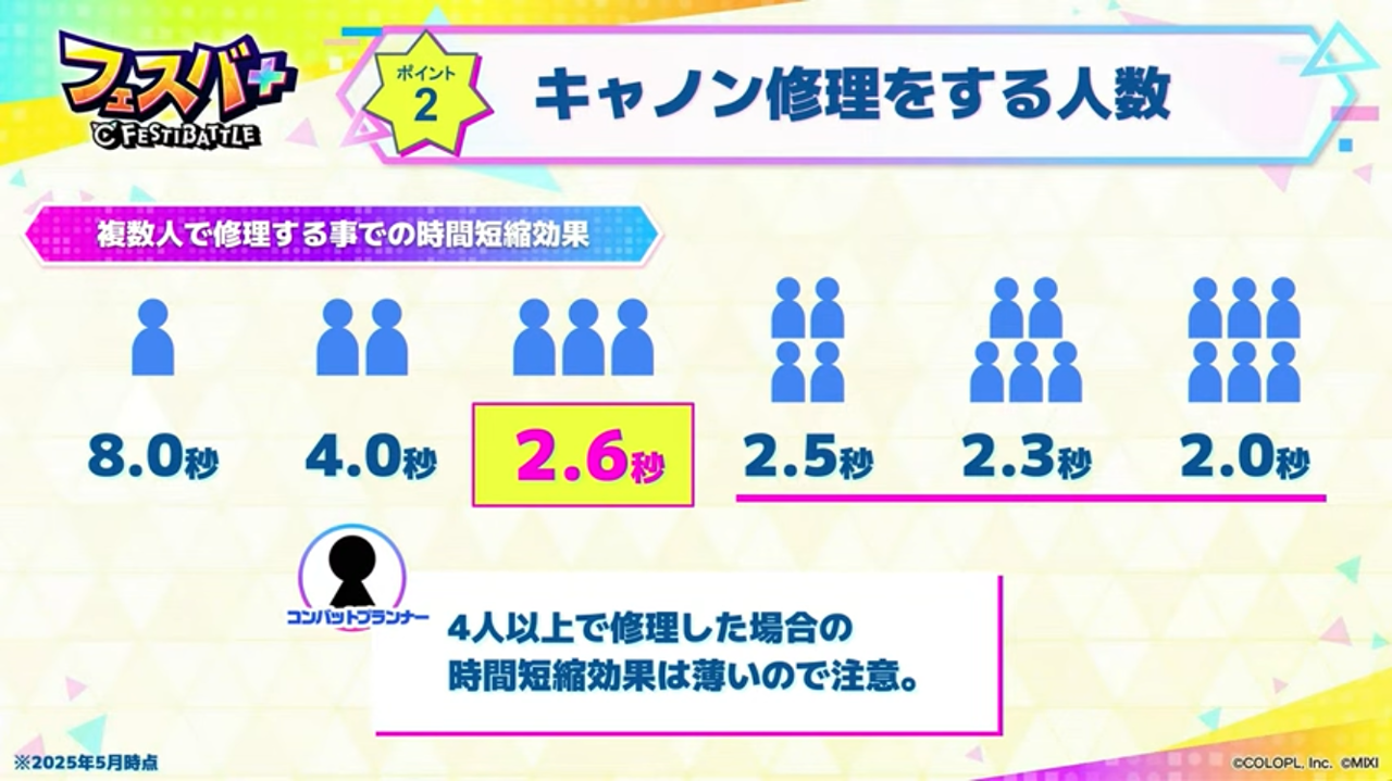アーサーバリアの持続時間は5秒、キャノン1人修理は8秒だから後半バリアが途切れて殴り放題なんです なので味方アーサーがキャノン周辺でバリア貼ってたら、素早く修理を手伝ってあげてください。それするだけで勝てる試合は無限にあります(多分)