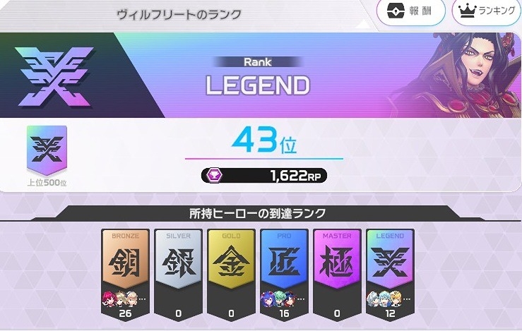 RP1453のヴィルもったいないからコロテナ行ったら6勝1敗でマスター行けた ヴィル強すぎだぜ。後半は味方が強くてマジ助かった。ありがとう~