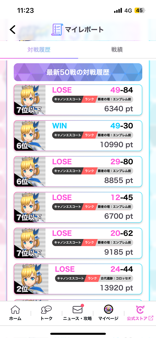 覇者キャノンとはコロッセオキャノンだけ勝率悪すぎる。 (1時間で1勝のみ後の試合は敗北)