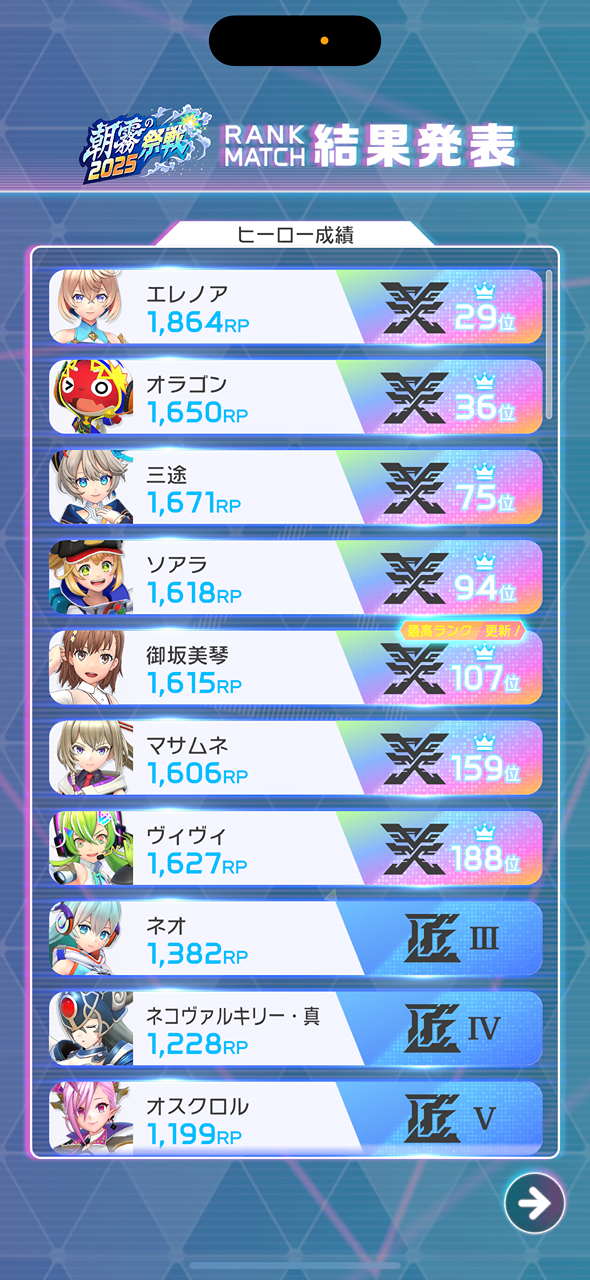 【朝霧祭戦 2025】 今シーズンお疲れ様でした! 初美琴レジェンド行けたので満足です😽😽