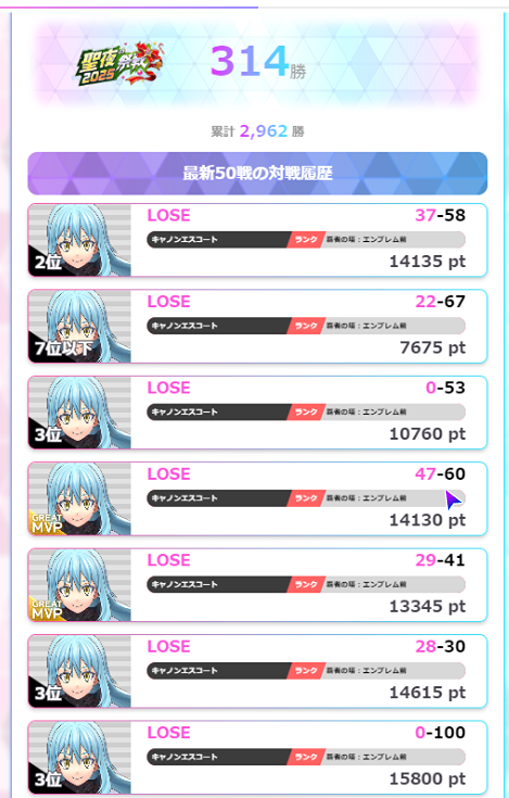 はい。おしまい。(全敗) フルパあざした!