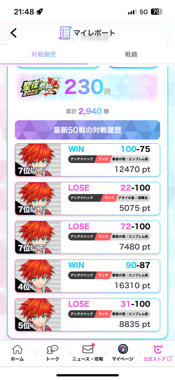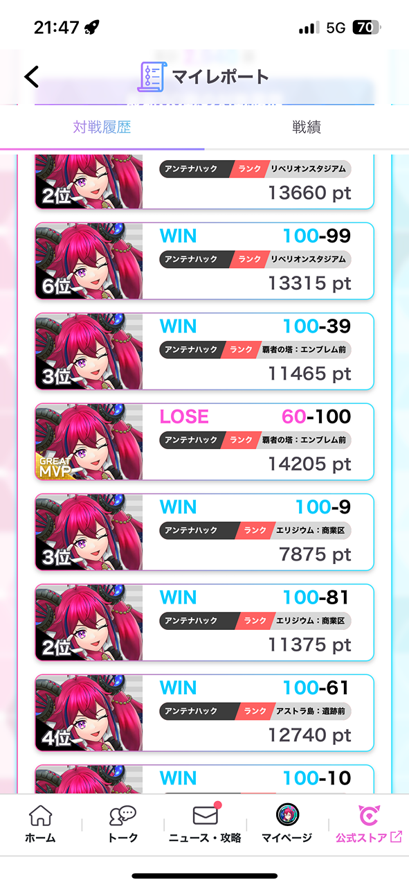 うーん…最近ラプちゃん以外まじで終わってんなぁ…ほとんど勝てないし勝敗関わらず内容も酷い。赤髪とカルマは目も当てられない。今日はもうやめるか。ラプちゃんお疲れ様、ありがとう♪この子しか勝たん…!